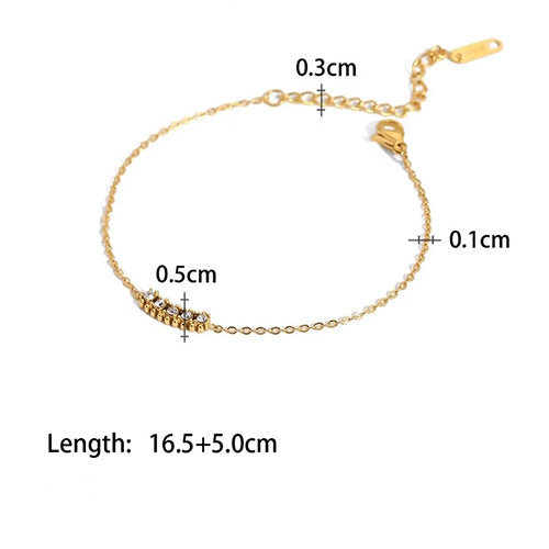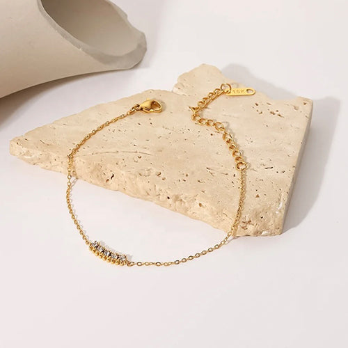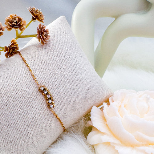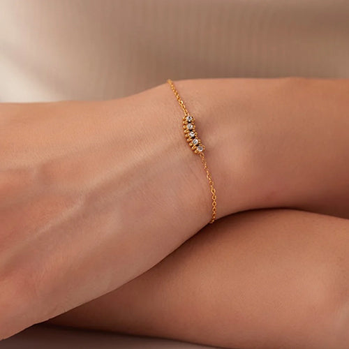 Our “AILSA”bracelet is a delicate and charming piece, designed with a few daintily placed diamonds that add a touch of sparkle. Its lightweight and understated design make it easy to wear for any occasion, offering versatility in styling. The simplicity of the bracelet allows it to complement various outfits, making it a timeless addition to any jewellery collection.