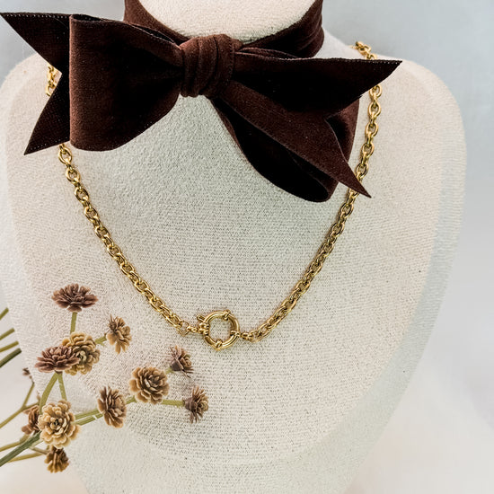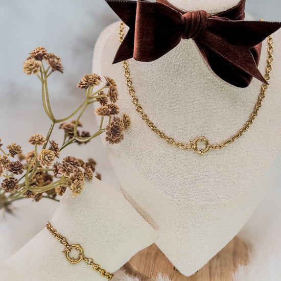 Our "Alonza" choker necklace , a stylish circle link charm necklace perfect for personalizing with your favourite charms. Pair it with the coordinating bracelet for a complete look!