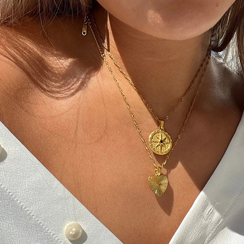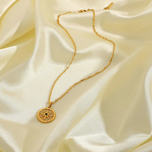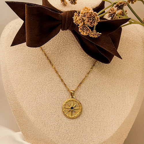 Our "COMPASS" Necklace features a beautifully crafted pendant designed in the shape of a compass, symbolizing adventure and guidance. Made from high-quality materials, the necklace often includes intricate detailing and may be accented with a central stone. The adjustable chain allows for versatile styling, making it suitable for both casual and formal occasions. This piece serves as a meaningful accessory for those who appreciate exploration and the journey of life.