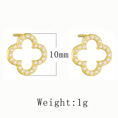 Elevate your style with these stunning "CRYSTAL CLOVER" Stud Earrings. Featuring a unique clover shape bordered by shimmering crystals, these gold-tone earrings add a touch of elegance to any outfit. Perfect for both casual and formal occasions, they bring a playful yet sophisticated flair to your accessory collection. Lightweight and comfortable, they're an ideal choice for all-day wear.