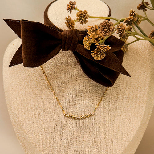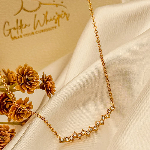 Our "ELENA" Necklace features a delicate design that highlights a simple yet elegant pendant. The pendant may be adorned with a shimmering gemstone or a minimalist pattern, complemented by a fine chain. This versatile piece can be worn for both casual and formal occasions, making it a great addition to any jewellery collection. Its understated elegance allows it to be layered with other necklaces or worn alone for a more subtle look.