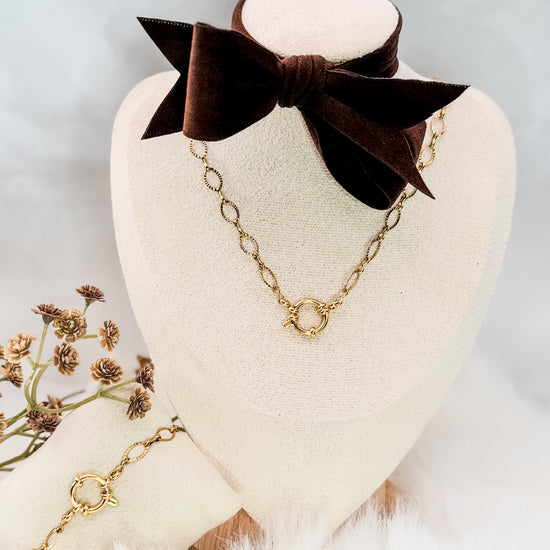Elevate your style with the "GRACIA” charm necklace . This elegant oval link design allows you to personalize it by adding your favourite charms. Perfect for any occasion. Style with matching bracelet