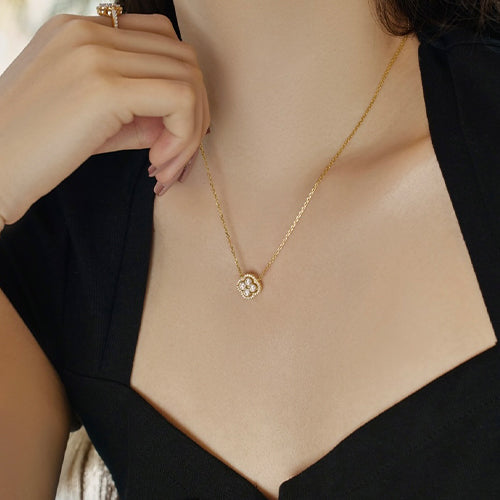 Our “LAMPERO CLOVER” Necklace features a clover design that highlights a polished and gleaming finish. Crafted with quality materials, this necklace is designed to be both stylish and durable. The clover motif symbolizes luck and good fortune, making it a meaningful accessory. Its versatile design allows it to be worn on various occasions, whether for everyday wear or special events.