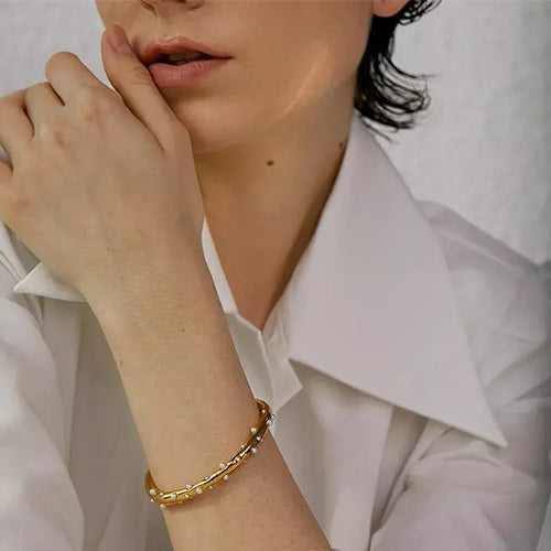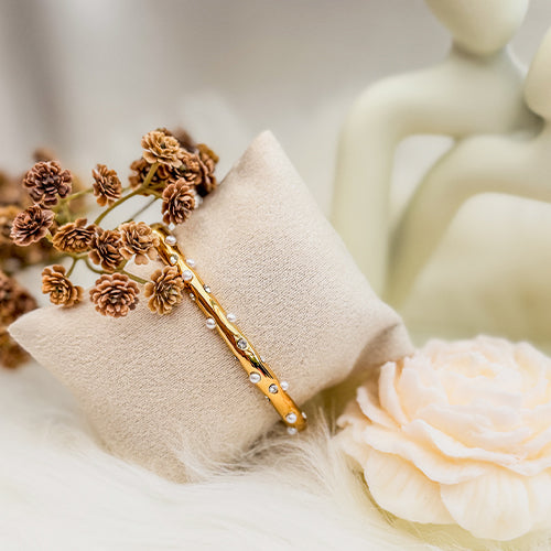 Our "NEREIDA" bracelet is an elegant piece that beautifully combines the luster of pearls with the brilliance of diamonds. This design showcases a harmonious balance between the soft, milky sheen of pearls and the sparkling allure of diamonds, creating a sophisticated and timeless accessory. Crafted from high-quality materials, the bracelet offers versatility, making it suitable for both everyday wear and special occasions. The name "Nereida," inspired by Greek mythology, reflects the grace and beauty of the ocean, adding a layer of meaning to this exquisite jewellery piece.