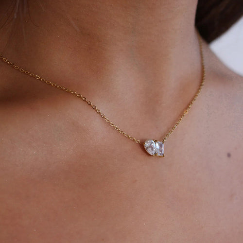 Our "TOGETHER FOREVER" necklace showcases enduring Toi et Moi design, representing the union of two stones coming together in perfect harmony. This piece features two beautifully cut stones, nestled side by side, creating a stunning interplay of light and brilliance making it a versatile accessory suitable for various occasions. It’s a perfect gift for your someone special.