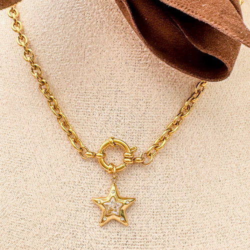 Our “TWILIGHT SPARK ” charm is a charming star-shaped charm that adds a touch of whimsy and elegance to any charm chain. Its golden hue and sparkling center make it a captivating addition. It can be effortlessly added to any charm chain Perfect for those who want to express their unique style in a simple yet enchanting way.